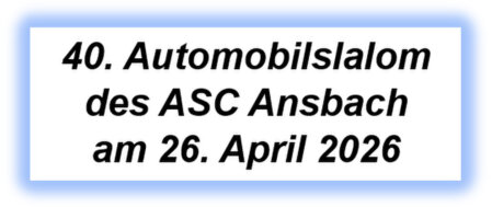 Mit einer Online-Nennung erleichtert ihr uns, und auch euch die Vorbereitung zum Automobilslalom des ASC-Ansbach. Das Nennungsformular mit einem PDF-Reader öffnen und die hellblau hervorgehobenen Felder ausfüllen. Die Unterschrift erfolgt bei der Papierabnahme. Das ausgefüllte Nennungsformular abspeichern, und die Nennung per Mail an asc-ansbach@navc.de. So können wir optimal eure Teilnahme zu unserem Slalom vorbereiten.